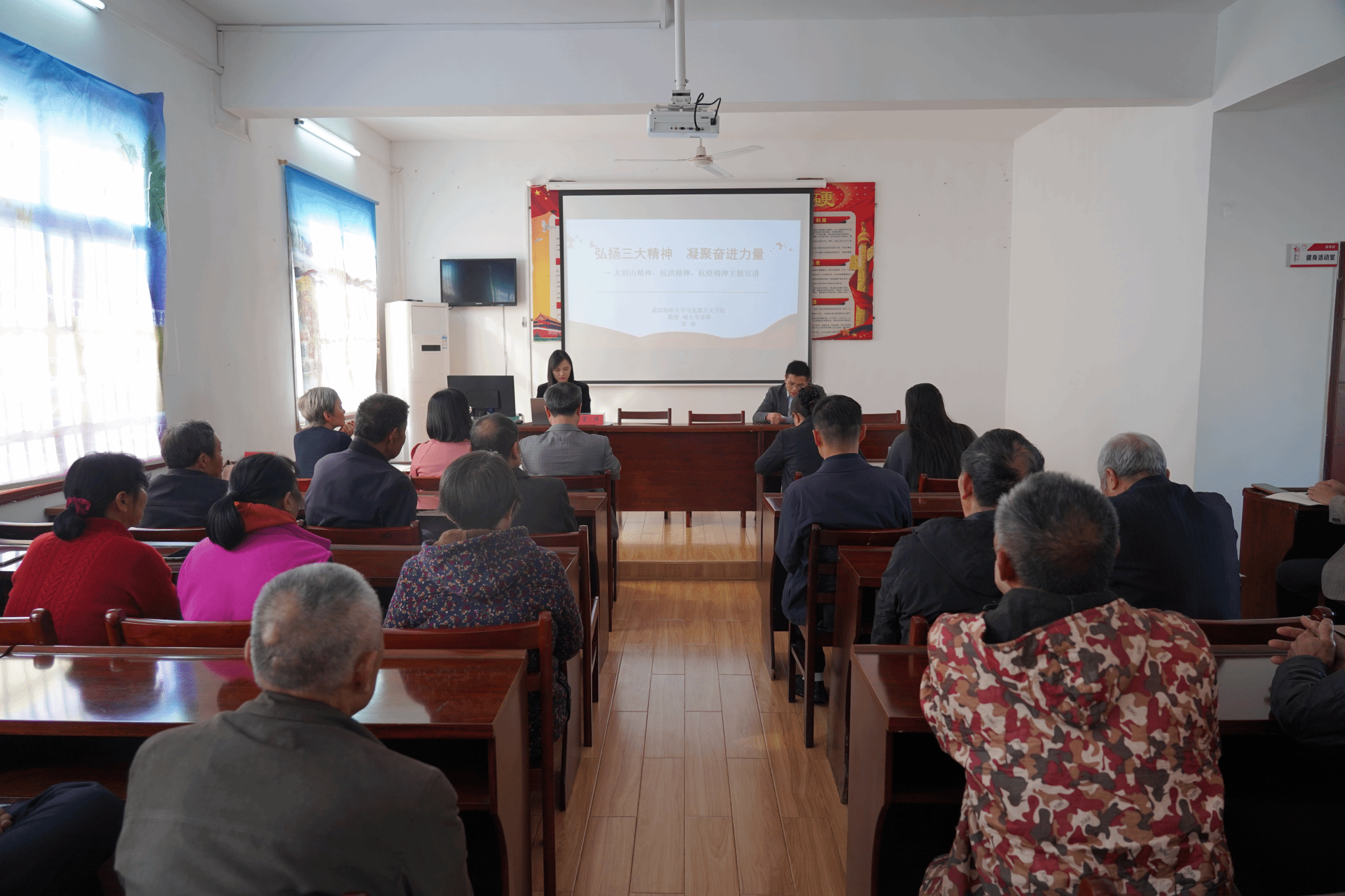为深入推进“大思政课”建设,必赢bwin线路检测中心宣讲团于10月23日赴鄂州市华容区开展“大思政课”“百马行动”宣讲活动。省委讲师团副主任孔奇志、办公室副主任陈静莅临指导,学院党委书记邹茜率队,常沛、王海燕、商卫星、喻学林、李静、刘香菊、杨晶晶、徐莺等8位教师及学院研究生“初心”实践团学员,分赴华容镇凉亭村、庙岭镇大廖社区、临江乡黄柏山村、蒲团乡郭垱村、段店镇孔关村、永福社区,以及区卫健局、区水利和湖泊局等地开展宣讲。