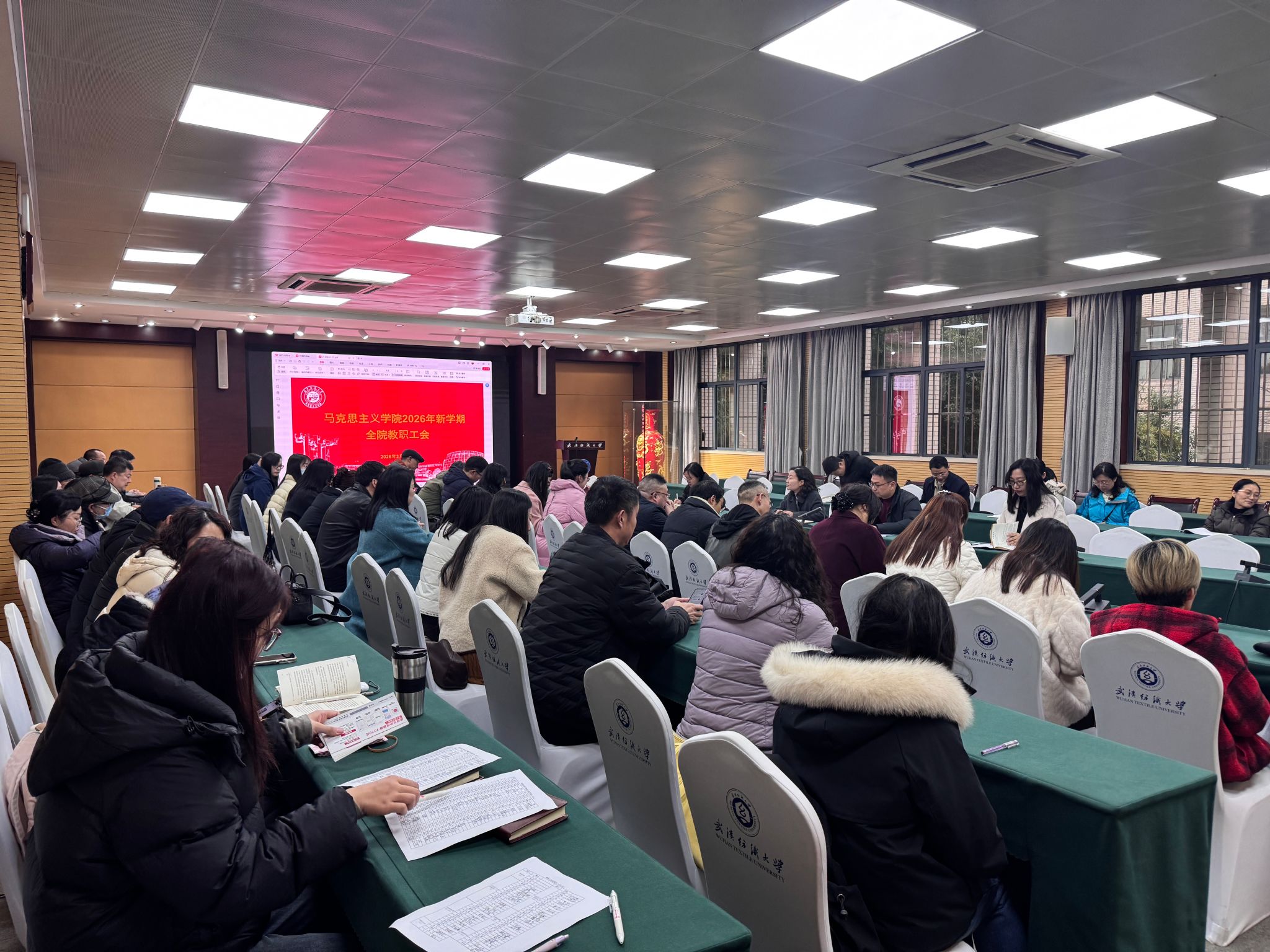 会上,全体教师集中学习了习近平总书记在二〇二六年春节团拜会上的讲话精神、在省部级主要领导干部学习贯彻党的二十届四中全会精神专题研讨班开班式上的重要讲话精神、在二十届中央纪委五次全会上的重要讲话精神,及《求是》杂志发表的《让愿担当、敢担当、善担当蔚然成风》重要文章,中国共产党第二十届中央纪律检查委员会第五次全体会议公报,湖北省加快建成中部地区崛起的重要战略支点推进大会精神等内容。
