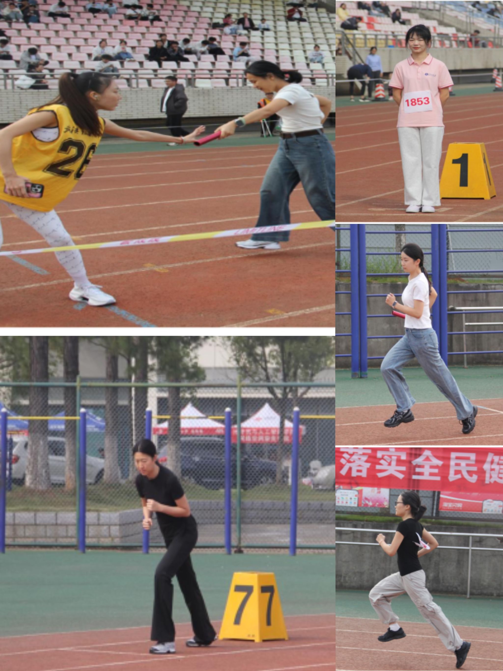 随着接力棒稳稳递出,这一交接传递的不仅是速度的接力,更是信任与团队精神的传递。看台上,众多师生目光紧紧追随,为选手们加油助威,现场气氛热烈非凡,展现了学院强大的凝聚力。