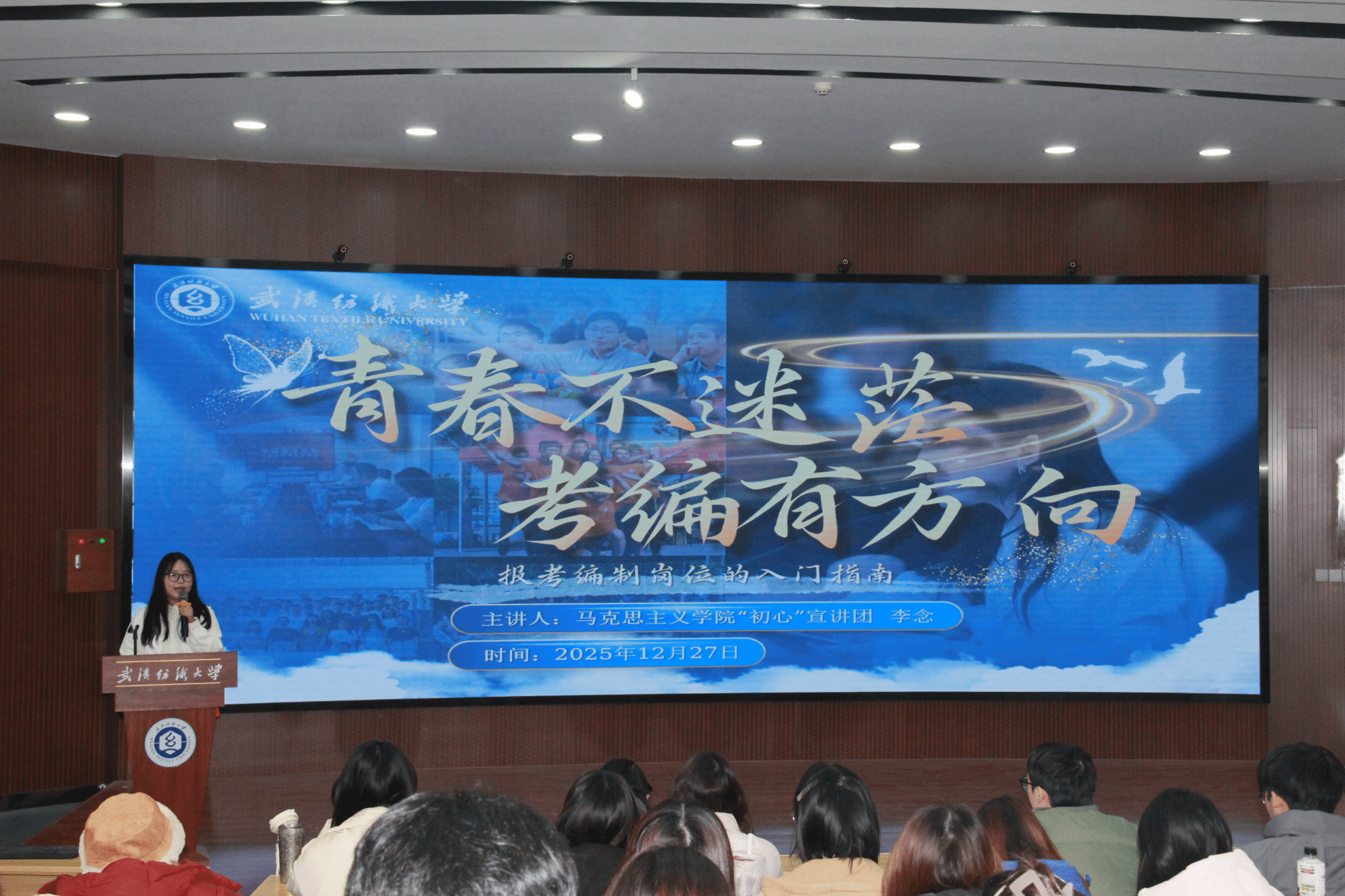 为进一步帮助学校广大青年学子明确方向,科学规划未来发展路径,12月27日下午,必赢线路检测中心“青马”班第四次理论学习在阳光校区03-T201思政课虚拟仿真研究中心举行。本次宣讲活动由必赢bwin线路检测中心“初心”宣讲团负责开展,宣讲内容聚焦“公务员考试、事业编制报考以及研究生考试”三大方向,由“初心”宣讲团学生骨干梁爽主持,校团委学生副书记周玲及宣讲团成员李念、徐梦、梁爽主讲,学校“青马”班全体学生参加。