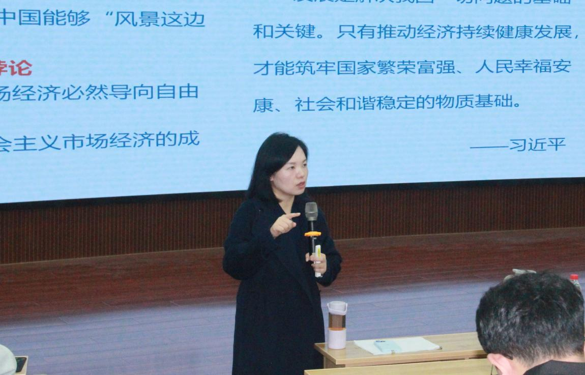 杨晶晶以回答时代之问引出中国经济发展成就及理论意义,阐述其理论逻辑主脉和四大板块内容,涉及人民立场、理论创新、实践路径、世界贡献等方面,她指出,习近平经济思想以人民立场为起点,经过理论创新、实践深化,既指引中国经济发展奇迹,也为世界贡献超越西方模式的中国智慧,回应“时代之问”。此外,还从实践中,分析习近平经济思想强调统筹协调。如“五个统筹”高度注重总供给与总需求的动态平衡,这既是对马克思主义经济理论中供求关系辩证统一原理的运用,又从系统推进经济运行的视角,凸显了与西方传统自由经济模式的差异。习近平经济思想为中国经济高质量发展提供了更具系统性的思路。